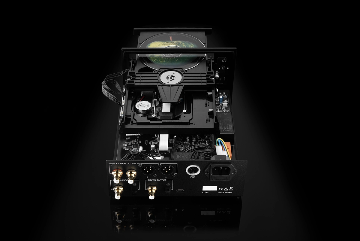 Designed and built in Italy, the CD-10 features a heavy aluminum chassis that minimizes vibration and enhances sonic purity. It’s offered in Black, Silver, or Gold anodized finishes.